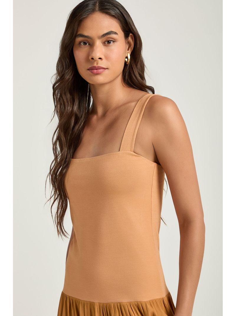 O Vestido conta com mix de tecidos, decote reto, alças largas, recorte na saia e pequenos franzimentos. O vestido preto traz uma proposta minimalista e refinada. Seus acabamentos discretos garantem um visual elegante com pouco esforço.
