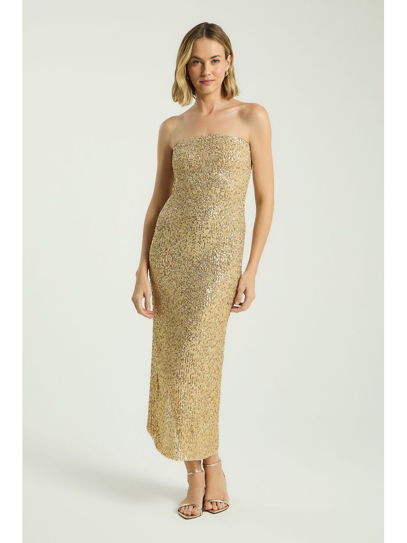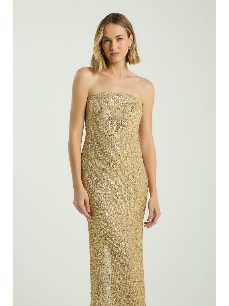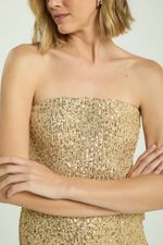 O Vestido, confeccionado em tecido de paetê, possui decote reto de modelo tomara que caia e fenda traseira na barra. Com um caimento impecável e acabamento sofisticado, o vestido de paetê é perfeito para eventos noturnos, festas e momentos especiais.